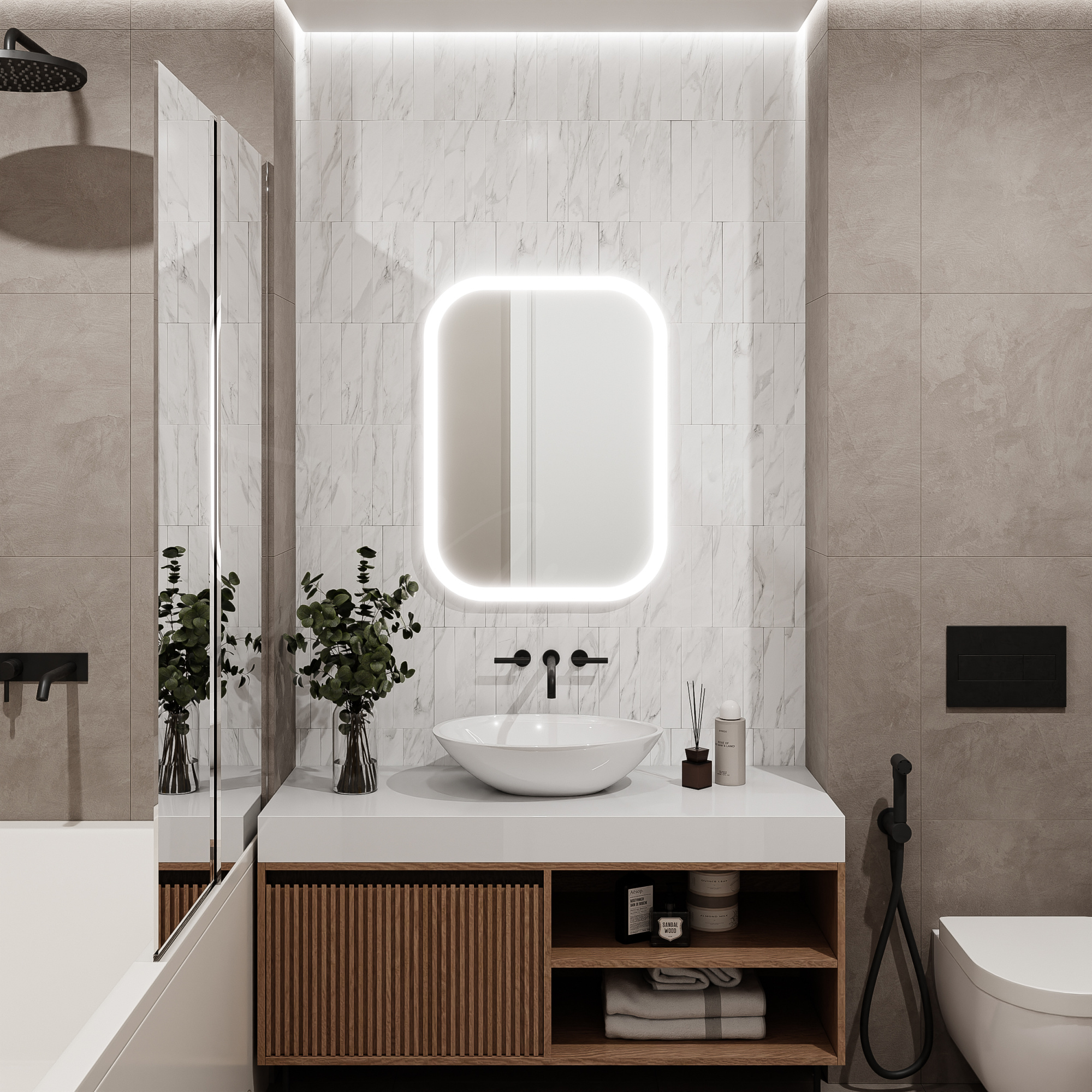 - Монтаж зеркала с подсветкой стоит 30% от стоимости зеркала, но не менее 3200 руб.